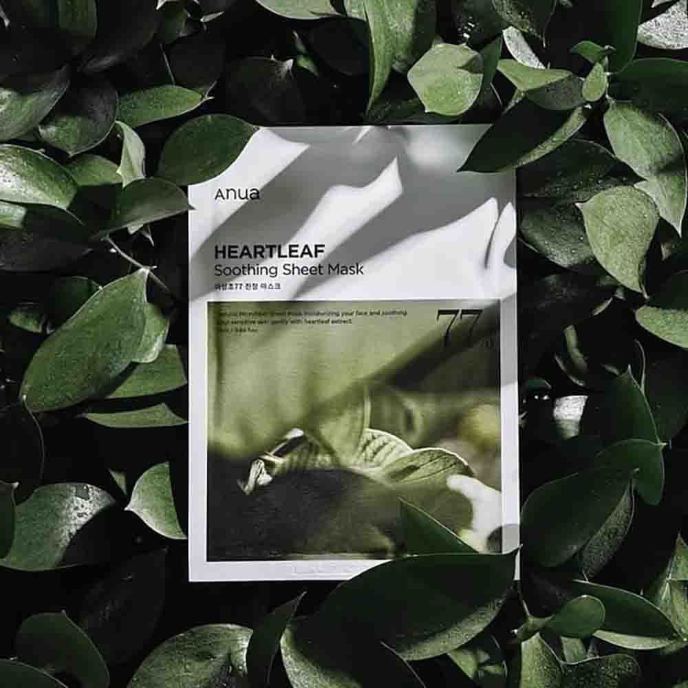 Soothe, hydrate, and balance your skin with the Anua Heartleaf Soothing Sheet Mask, a calming treatment infused with Heartleaf Extract (Houttuynia Cordata) to reduce redness, irritation, and sensitivity. Each mask delivers a concentrated dose of moisture and antioxidants, helping to strengthen the skin barrier and restore a healthy glow. Enriched with Centella Asiatica, Hyaluronic Acid, and Panthenol, it provides deep hydration and cooling relief to tired or inflamed skin. The soft, eco-friendly sheet adheres perfectly to the face for maximum absorption and comfort. Perfect for sensitive, acne-prone, or stressed skin, this soothing mask leaves your complexion refreshed, calm, and hydrated after every use.