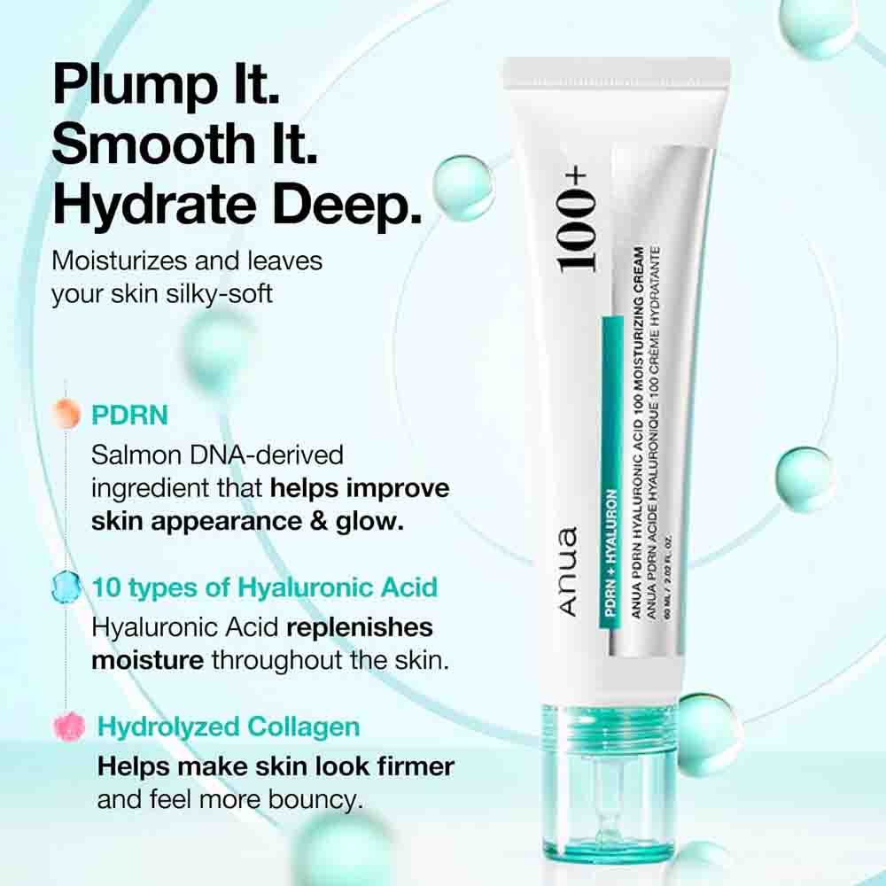 Deeply nourish and rejuvenate your skin with the Anua PDRN Hyaluronic Acid 100 Moisturizing Cream, a rich yet lightweight formula designed to restore elasticity, lock in hydration, and strengthen the skin barrier. Powered by PDRN (Salmon DNA Extract) and Hyaluronic Acid, this cream boosts cell regeneration, smooths fine lines, and provides long-lasting moisture for soft, supple skin. Enriched with Panthenol, Ceramides, and Niacinamide, it soothes irritation, brightens dullness, and keeps the skin plump and radiant all day. The non-greasy, fast-absorbing texture makes it ideal for dry, sensitive, and mature skin. Reveal firmer, dewier, and more youthful-looking skin with every application.