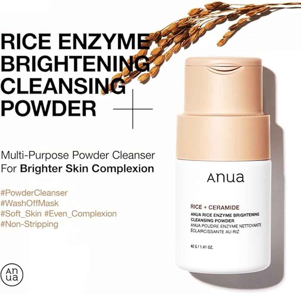 Experience a new level of clean and radiance with the ANUA Rice Enzyme Brightening Cleansing Powder 40g, a gentle exfoliating cleanser powered by Rice Enzymes, Papain, and Niacinamide. This innovative powder-to-foam formula deeply cleanses pores, removes dead skin cells, and refines texture while brightening dull, tired skin for a smooth, luminous finish.