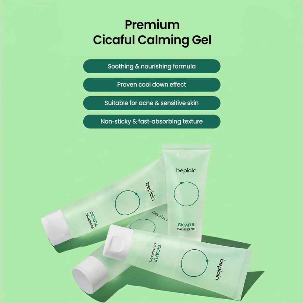 Instantly cool and calm irritated skin with Beplain Cicaful Cooling Gel, a lightweight soothing gel formulated to reduce redness and provide refreshing hydration.