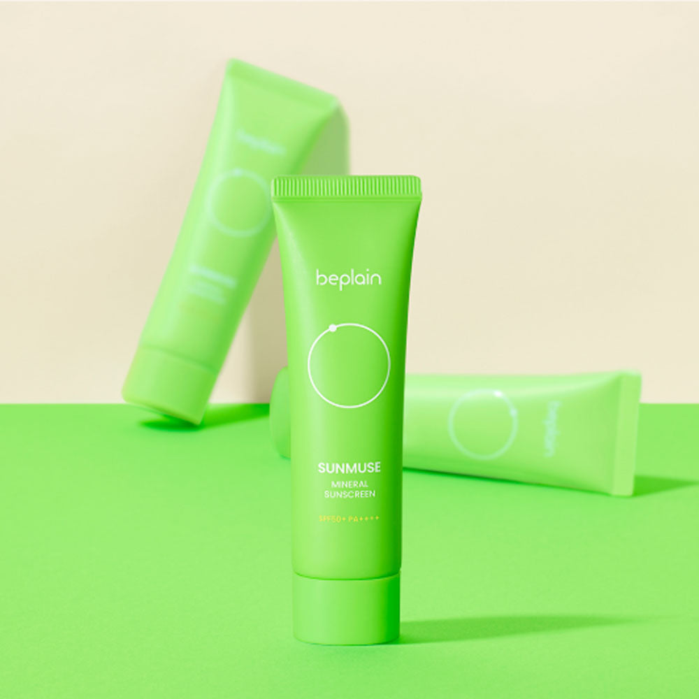 Protect sensitive skin with Beplain Sunmuse Mineral Sunscreen SPF50+ PA++++, a gentle mineral-based sunscreen designed to shield skin from harmful UVA and UVB rays.