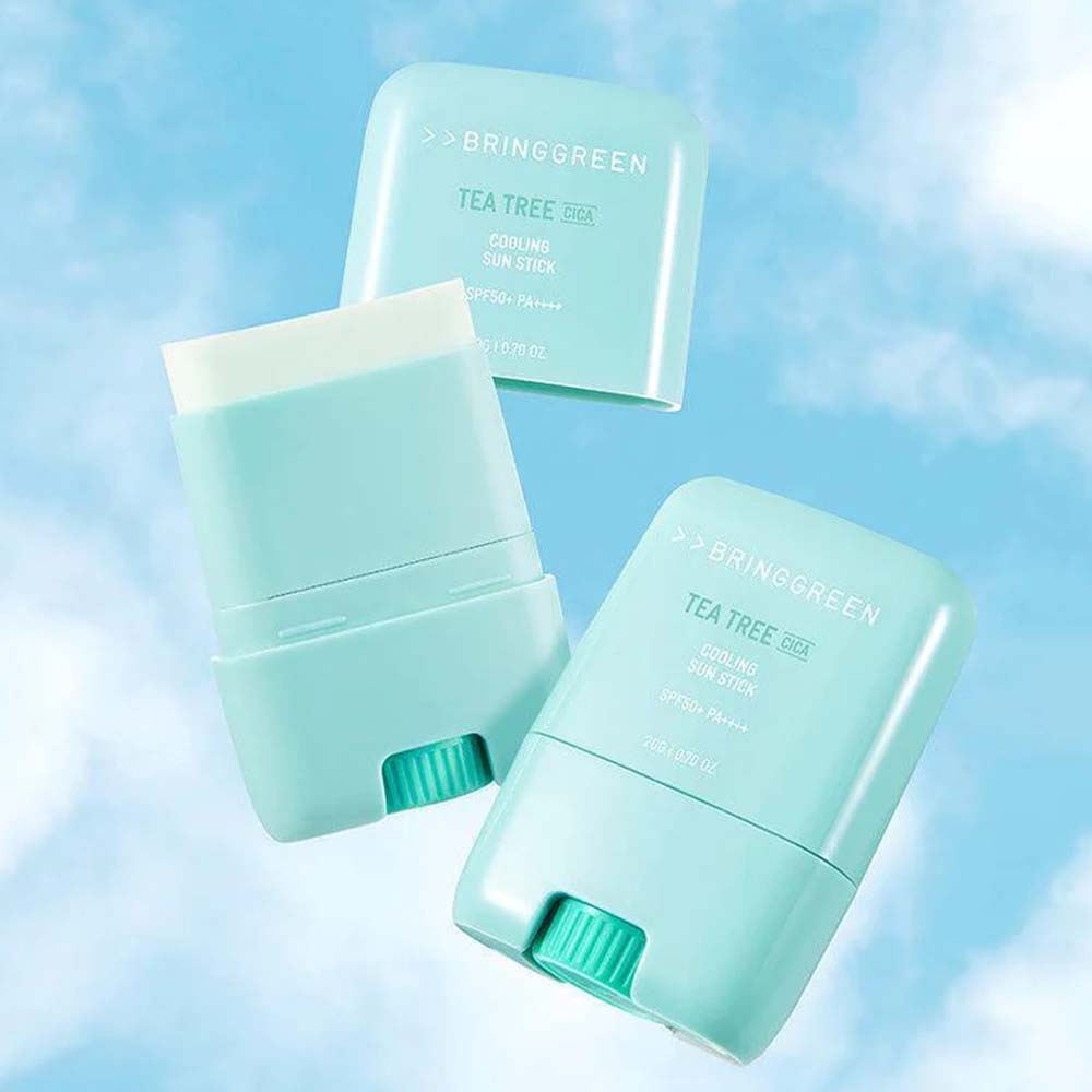 Stay protected and refreshed with the BringGreen Tea Tree Cica Cooling Sun Stick, your on-the-go solution for soothing UV protection. Formulated with Tea Tree Extract and Centella Asiatica (Cica), this sun stick calms irritation, controls excess oil, and helps prevent breakouts while providing powerful SPF50+ PA++++ defense against harmful UVA and UVB rays. The lightweight, non-greasy formula glides smoothly over makeup, leaving a natural matte finish without clogging pores.
