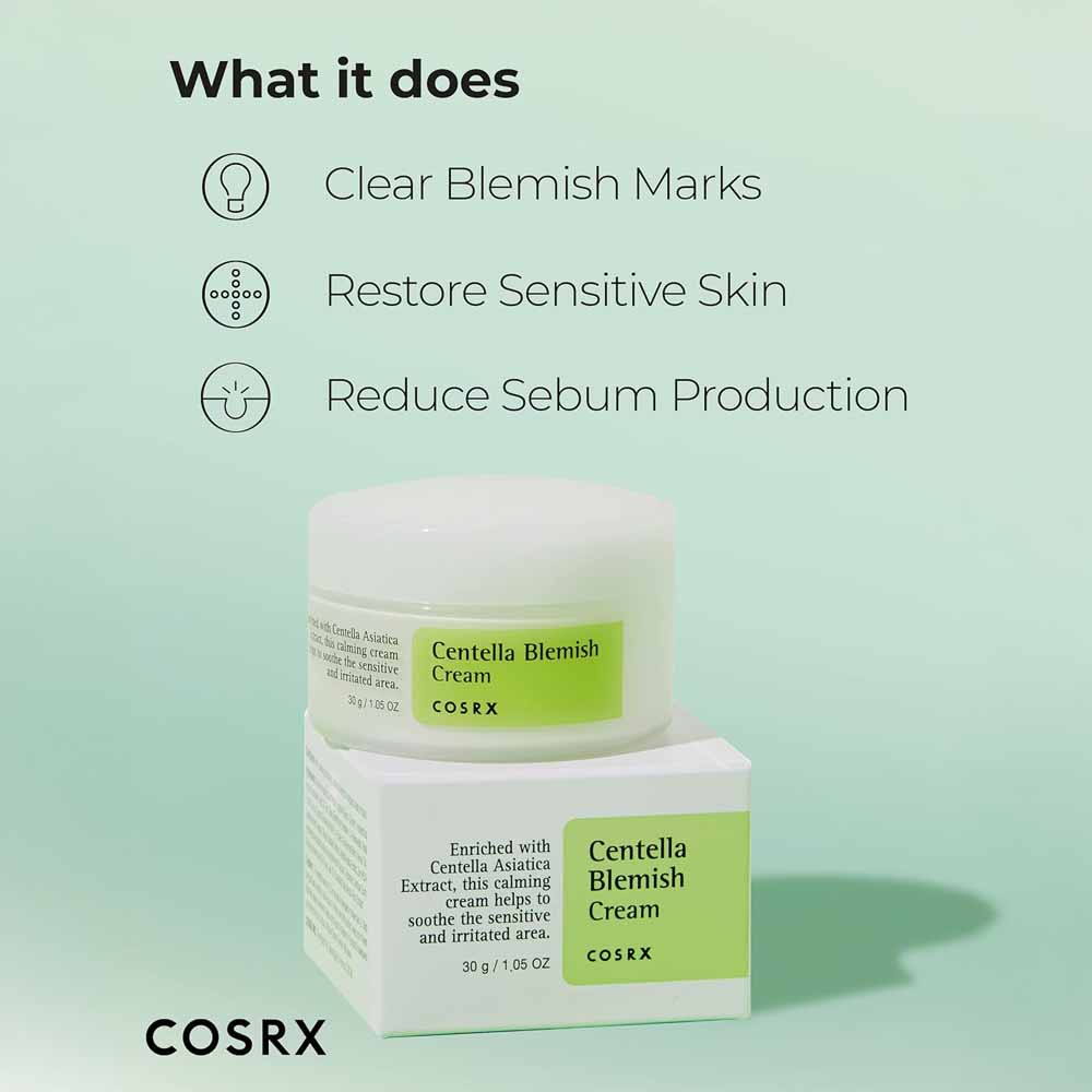 Formulated with no artificial fragrance or harsh chemicals, this gentle cream is ideal for acne-prone and sensitive skin. Use it as a spot treatment or all over problem areas to achieve a smoother, calmer, and more even complexion. With consistent use, COSRX Centella Blemish Cream leaves your skin clear, balanced, and healthy-looking.