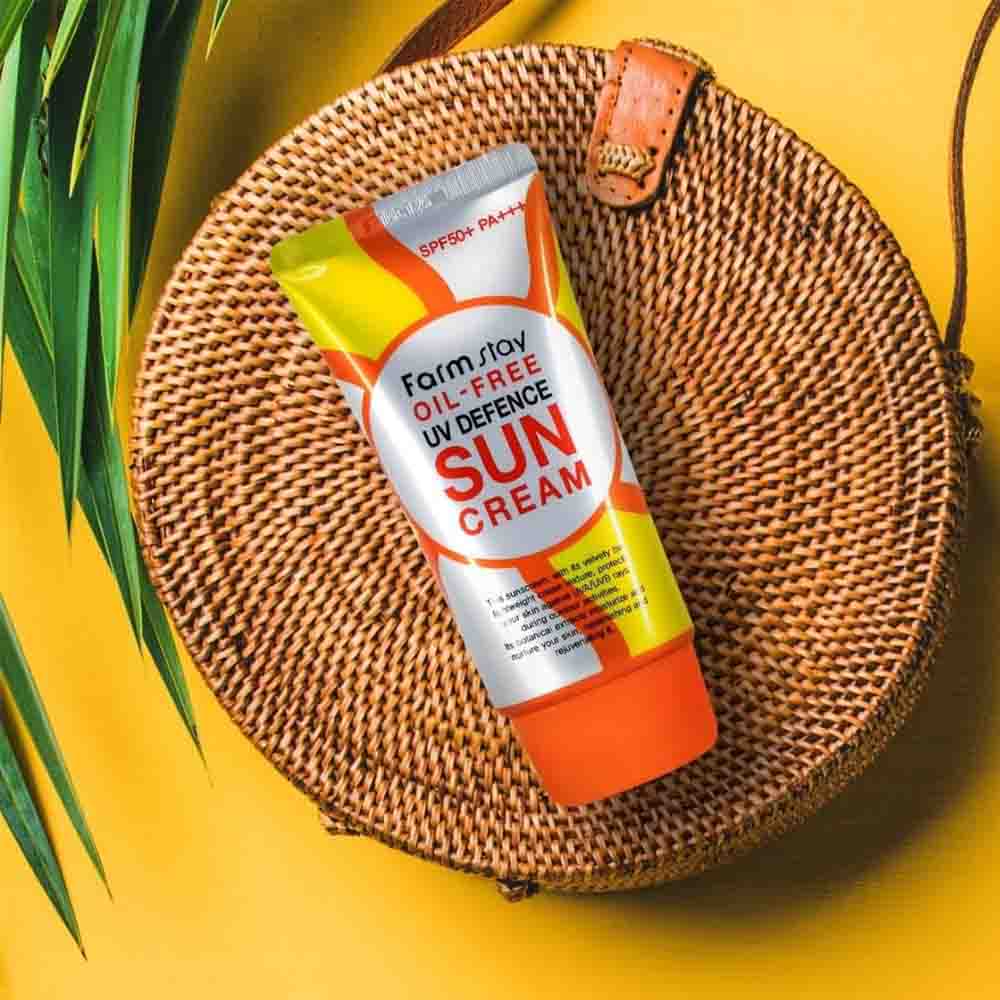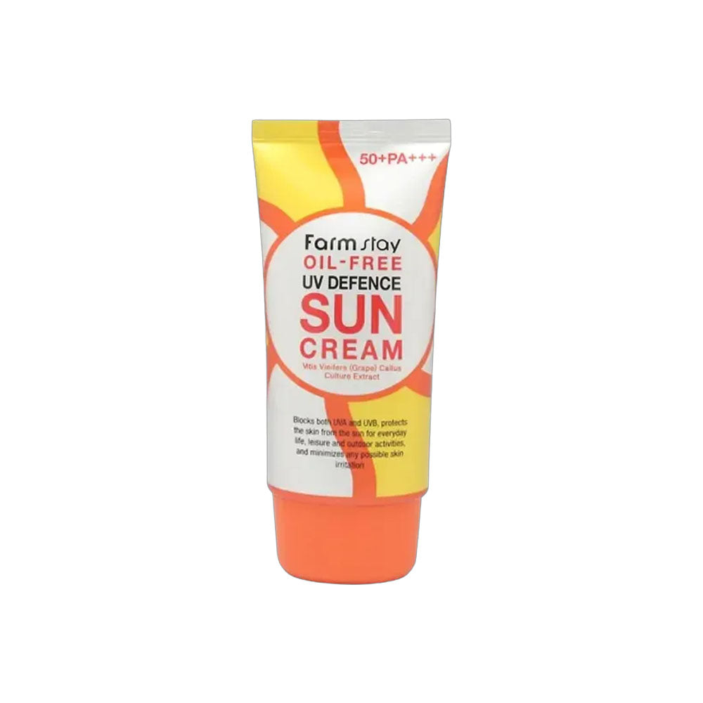 Protect your skin from harsh sun exposure with Farm Stay Oil-Free UV Defence Sun Cream SPF50+ PA++++, a lightweight sunscreen formulated for strong daily UV protection without greasiness.