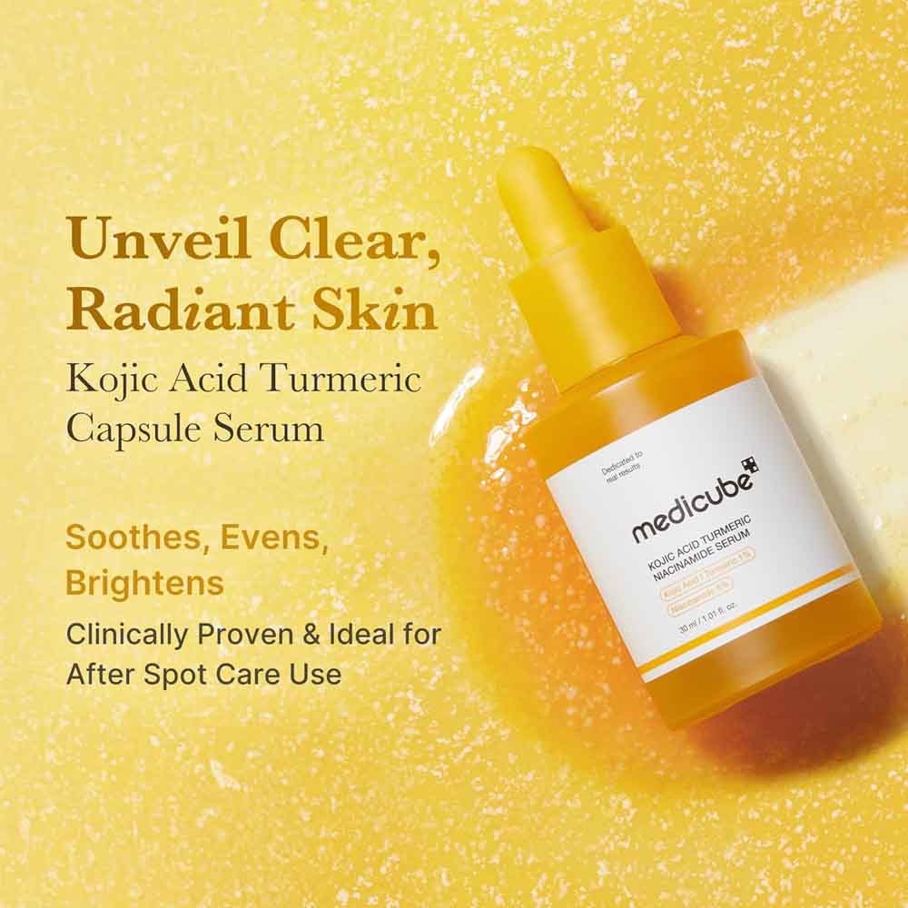 Buy MEDICUBE Kojic Acid Turmeric Niacinamide Serum 30ml in UAE and target pigmentation, dark spots, and uneven skin tone with advanced Korean brightening technology. This high-performance serum is formulated to visibly improve skin clarity, enhance glow, and promote a smoother complexion.