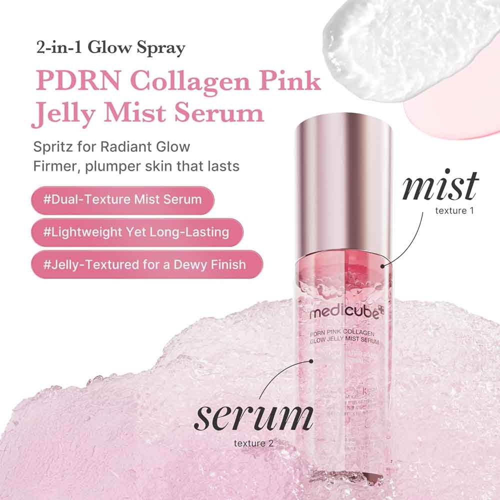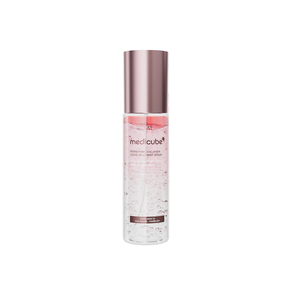 Buy MEDICUBE PDRN Pink Collagen Glow Jelly Mist Serum 100ml in UAE and achieve instant hydration with radiant glow using advanced Korean skincare innovation. This dual-function jelly mist serum combines the benefits of a collagen serum and a refreshing facial mist in one lightweight formula.