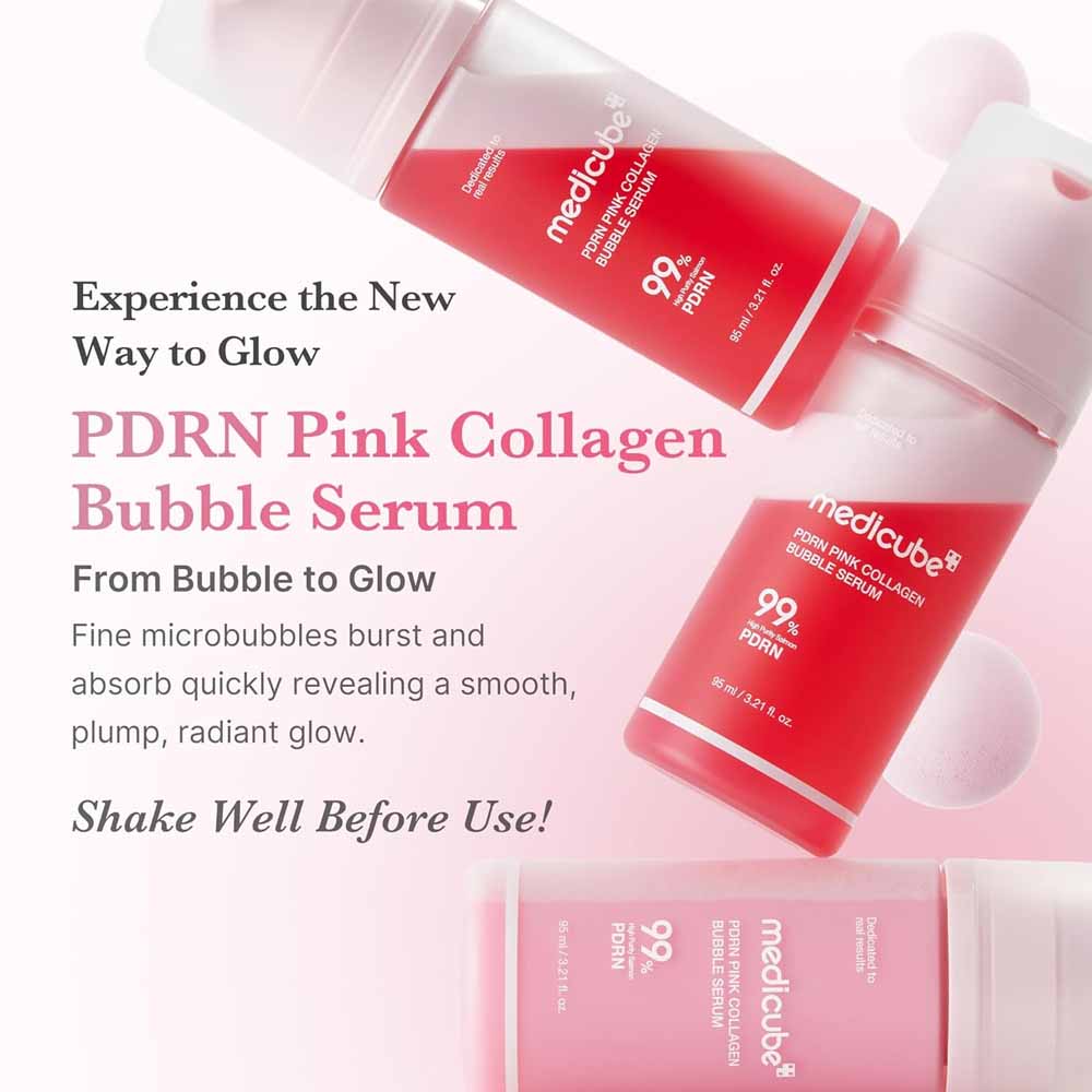 Buy MEDICUBE PDRN Pink Collagen Bubble Serum 95ml in UAE and experience innovative Korean skincare designed to boost glow, elasticity, and hydration. This unique bubble-to-serum formula activates on the skin, helping deliver collagen-rich nourishment while improving overall skin texture and radiance.