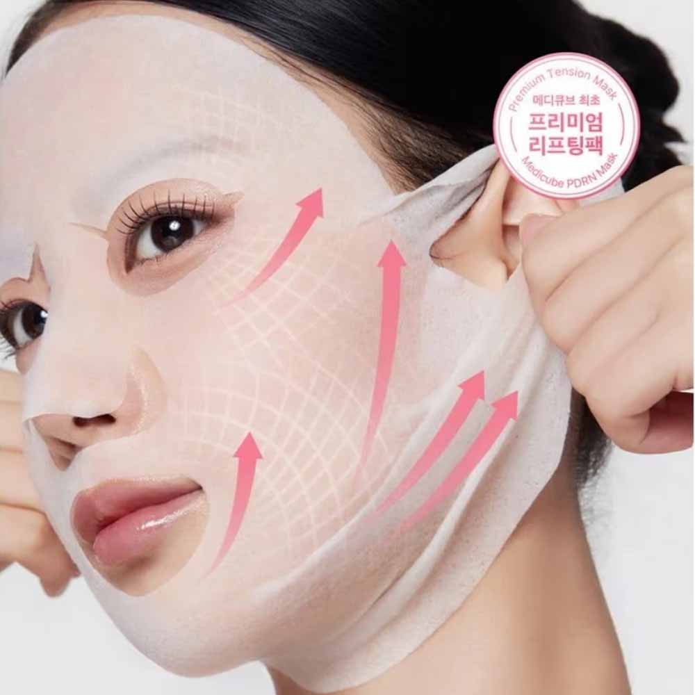 Buy MEDICUBE PDRN Pink Tension Up Mask 34g (4EA) in UAE and enjoy intensive firming and glow care with premium Korean sheet mask technology. This collagen-rich tension mask is designed to visibly lift, hydrate, and improve skin elasticity in just one use.
