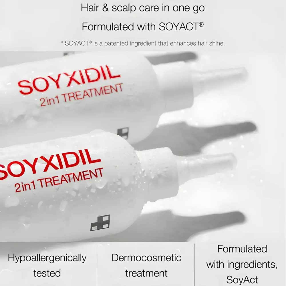 Formulated with Soy-based active ingredients and scalp-supporting nutrients, Soyxidil helps reduce hair fall, improve scalp balance, and enhance hair elasticity. It deeply conditions dry and chemically treated hair while supporting a healthier scalp environment — essential in the UAE climate where heat, humidity, and hard water can weaken hair.