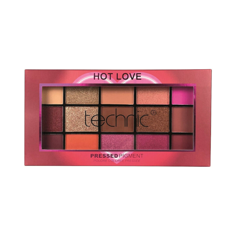 Technic's "Hot Love" Pressed Pigment Eyeshadow Palette - a sizzling collection of 15 fiery and passionate shades inspired by the intensity of love's embrace.