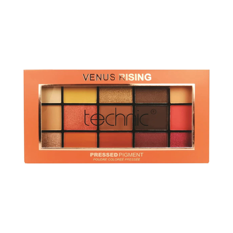 Technic's "Venus Rising" Pressed Pigment Eyeshadow Palette - a celestial collection of 15 ethereal and enchanting shades inspired by the mystical beauty of the rising sun and the night sky.