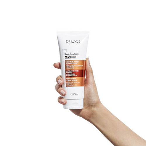 Give your damaged hair a second life with Vichy DERCOS Kera-Solutions Repairing Mask, powered by an intensive 4.0% Pro Keratin Complex. This rich, creamy mask delivers salon-quality repair in just 2 minutes, restoring softness, shine, and strength to even the most over-processed hair.