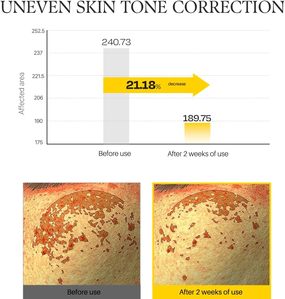 - Brightens skin and improves uneven tone