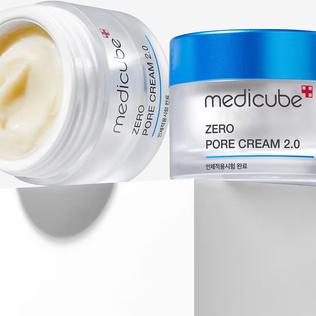 Medicube Zero Pore Cream 2.0 is a clinically tested pore-minimizing moisturizer that refines skin texture while controlling excess oil. This lightweight gel-cream features patented ingredients that reduce pore visibility and regulate sebum production for a matte finish. Deep hydration technology works without clogging pores, smoothing rough patches and evening skin tone. Hypoallergenic and dermatologist-tested, it's ideal for oily and combination skin types seeking pore refinement and oil control. The 50ml formula delivers visible results for clearer, more refined-looking skin.